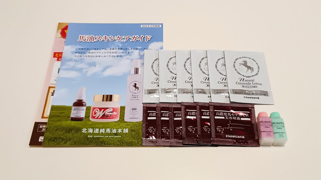 北海道純馬油本舗では、美容液・馬油・化粧水が入った馬油スキンケアセットが無料でもらえます。